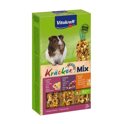 Τραγανό κράκερ με μέλι, σταφύλια και φρούτα, για ινδικά χοιρίδια. Ψήνεται σε φυσικό ξύλο για μεγάλη διάρκεια και απασχόληση. Περιέχει φρούτα και δημητριακά, που προσφέρουν ενέργεια και ποικιλία στη διατροφή, και βοηθά στη φυσική φθορά των δοντιών. Η συσκευασία περιέχει 3 κράκερ.