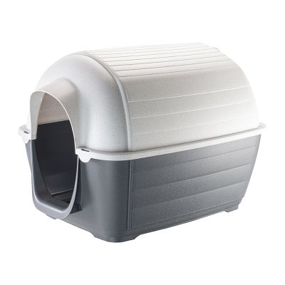 Πλαστικό σπίτι εξωτερικού χώρου για μεσαίου και μεγάλου μεγέθους σκύλους. Έχει εξαιρετική μόνωση και έτσι εξασφαλίζει στο σκύλο σας τέλειες συνθήκες διαμονής τόσο σε χαμηλές όσο και σε υψηλές θερμοκρασίες. Επιπλέον διαθέτει σύστημα αποστράγγισης ώστε ο σκύλος σας να κοιμάται πάντα σε στεγνό δάπεδο, άνετα και υγιεινά. Είναι κατασκευασμένο από σκληρό, ανθεκτικό σε κραδασμούς ανακυκλωμένο πλαστικό και διαθέτει σύστημα εξαερισμού που εξασφαλίζει μέγιστο εσωτερικό αερισμό. Διαθέτει μεγάλη είσοδο, επιτρέποντας στο σκύλο εύκολη πρόσβαση και είναι επίσης εξοπλισμένο με βάση με ιδιαίτερο σχήμα, εξασφαλίζοντας έτσι τέλεια απομόνωση από το έδαφος. Αποτελείται από δύο μέρη, μια βάση και μια οροφή, τα οποία κουμπώνουν και αποσυνδέονται εύκολα, κάνοντας τον καθαρισμό και τη συντήρηση πολύ πιο εύκολη.